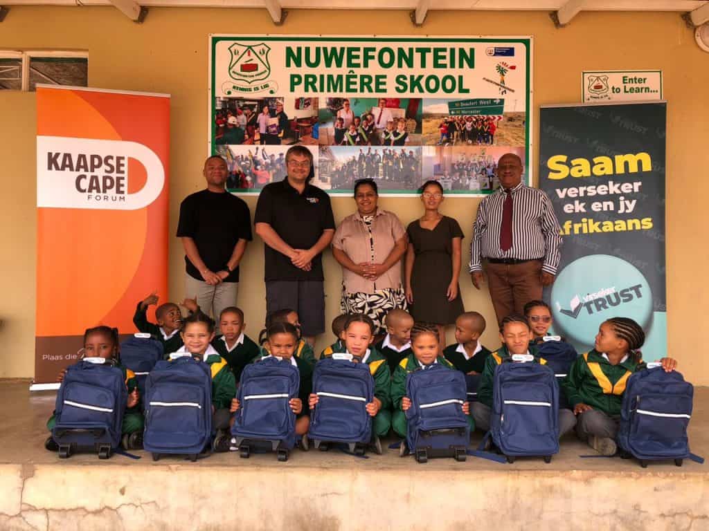 Die burgerregteorganisasie Kaapse Forum het vandeesweek ’n skenking van altesaam 49 skooltasse gevul met skryfbehoeftes aan behoeftige graadeens in die Wes-Kaap gemaak. ’n Totaal van 34 tasse is aan leerders aan die gekombineerde Hoërskool Vanrhynsdorp geskenk, sowel as 15 tasse aan leerders aan die Nuwefontein Primêre Skool in Kliprand in die verre noorde van die Wes-Kaap.